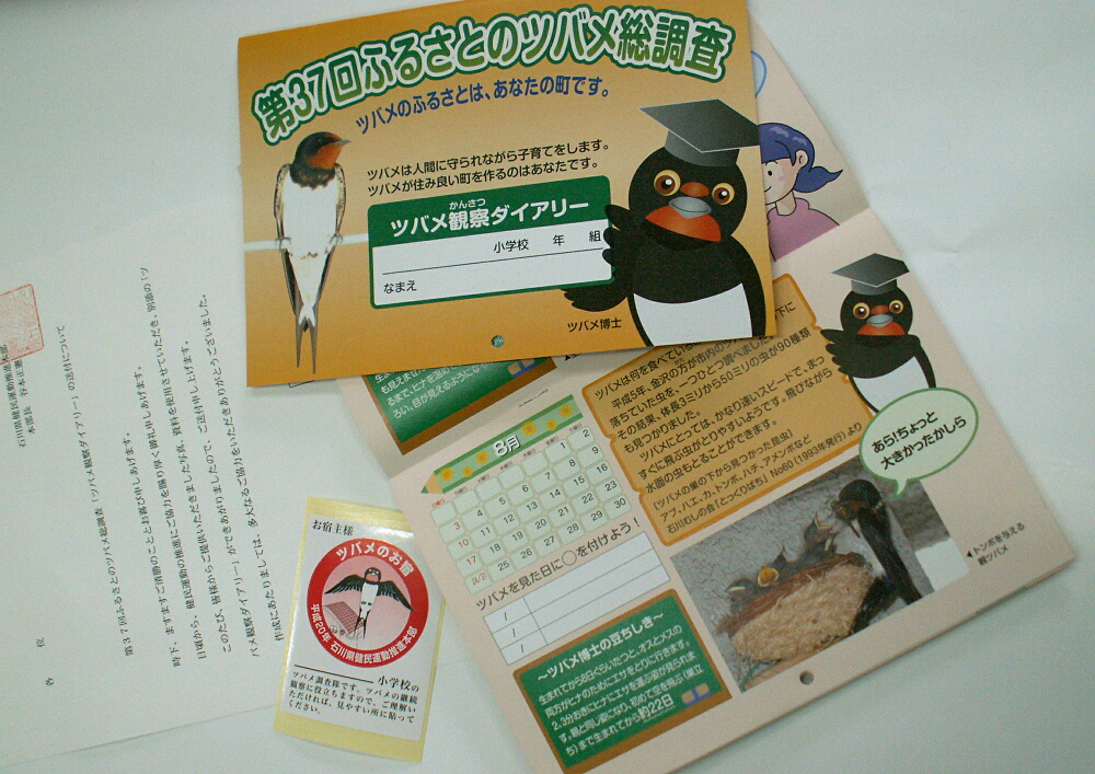 ひとつは、石川県健民運動推進本部・ふるさとのツバメ総調査検討委員会が制作した「第37回ふるさとのツバメ総調査・ツバメ観察ダイアリー」。