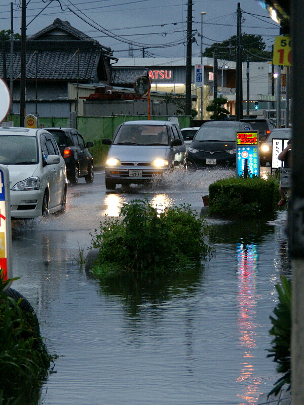 TWK前の歩道も一時15cmほど冠水し、この降りがあと数時間も続けばTWKも床上浸水してしまうという感じだったが、比較的短い時間で降りは収まり事なきを得たが―――昔はこんな降り方の雨はたしかに無かった気がする。
