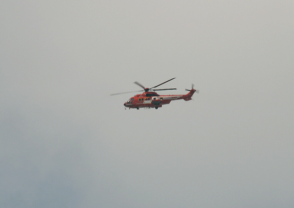 シルエットで「スーパーピューマ」と判ったが、音があの「ドリュリュリュ‥‥‥」というスーパーピューマが遠くからこちらに向かってくる時独特の、4枚ローターで空気を切り裂いて進んでくる感じとはちょっと違う。