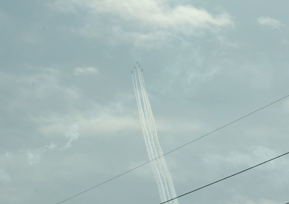 そして16号に入り、渋滞で止まった時にグッドタイミングで前方に5機編隊でスモーク吐きながら急上昇するところを車内から撮影できた↓