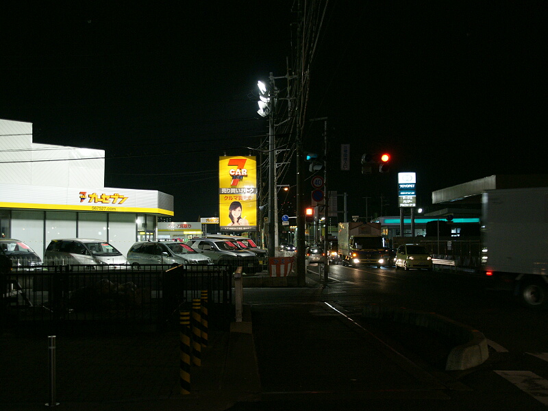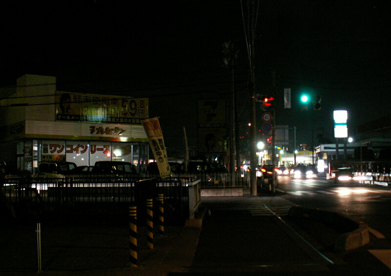 上の写真は、約一年前に撮ったTWKの横向かい側にある「大規模中古車店」の夜景です。