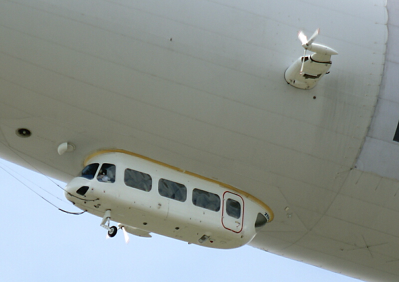 所有会社のサイトを見ると、生まれ故郷のドイツでは遊覧飛行の予約が常時一万人以上入っていて、順番がまわって来るまで一年待ちという人気ぶりだそうだが、ふわふわとゆっくりピッチングしながら浮遊する姿から想像すると「船酔い」しそうだし、3基の推進用エンジンの合計出力がたったの200馬力で最高速度はわずか125km/h‥‥‥。まぁ、のんびりと空に浮かぶ感じを味わうにはそれで十分なのかな!?