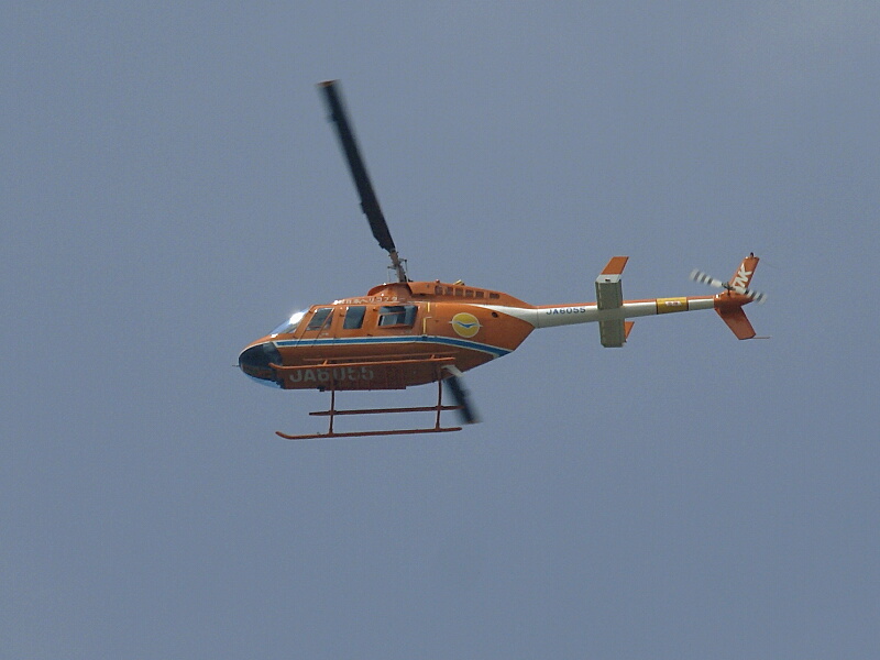 1月18日にTWK付近を飛んでいたのと同じカラーリングのBell206 L-3だが、新日本ヘリコプターにはこのタイプのヘリが8機くらいあって、先日のは「JA9711」、きょうのは「JA6055」で、別の機体だった。