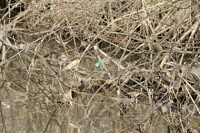 だから、隠れてるつもりでもオレ様には判るんだっつーの!! 水辺のこういう場所でこのブルーの物体とくれば、カワセミにきまってるじゃん!?‥‥‥って感じで、自慢の500mm砲で撮ってみると―――