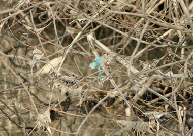 その後、さっきとは別の水路脇を歩いていて、やはり茂みに隠れた鮮やかなブルーの小さい物体を発見!!