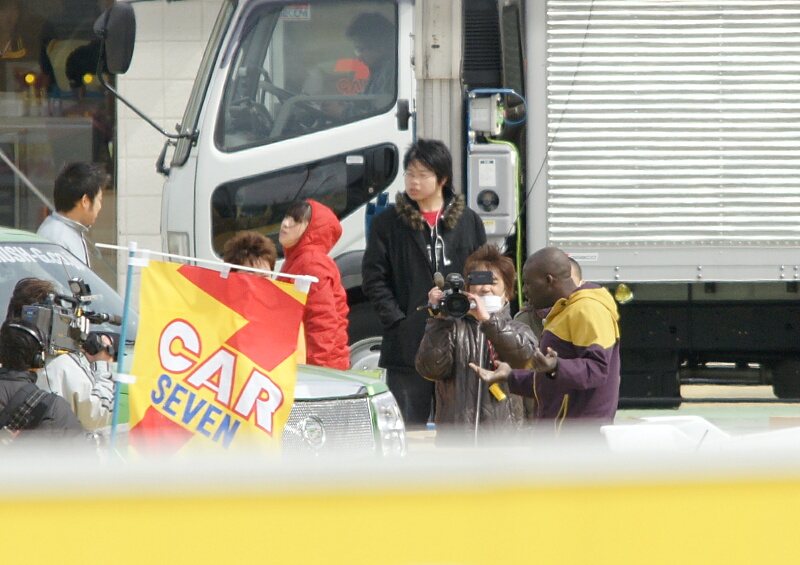 どーせばかばかしいバラエティ番組の収録だろう。どうやらクルマの車庫入れとか、そんな感じのネタでドタバタやってるんだろうけど、最近こういうTV収録現場の写真をブログに載せるのは厳禁、というTV局が多いので、盗撮してるのがバレないように気をつけないと。