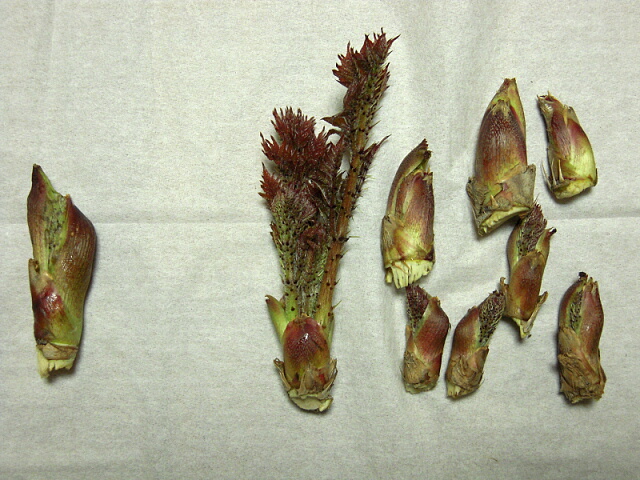 左端の一個は、きのうツインリンクもてぎの山の中で一つだけ採れた「栃木産タラの芽」。