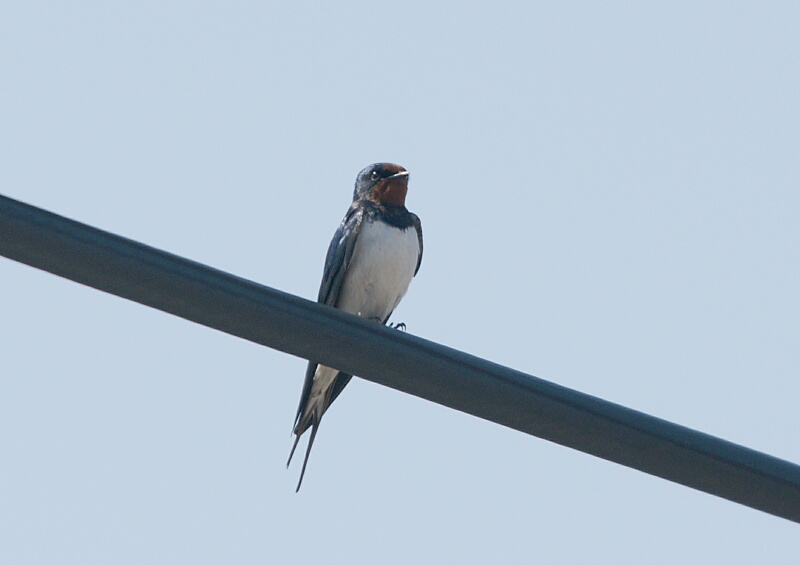 この後、近くの電線に止まってさっそく「縄張り鳴き」してたので、アップで撮ってみると‥‥‥