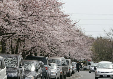 ↑公園裏側の駐車スペース脇の桜並木。ここが一番華やかに咲いてた感じ。