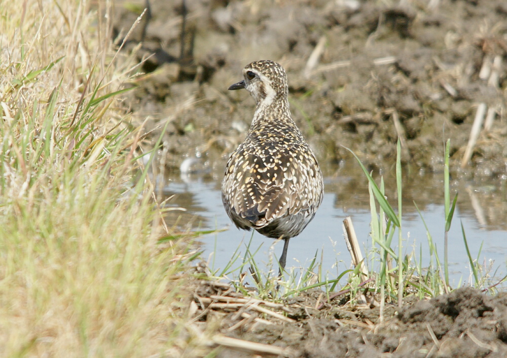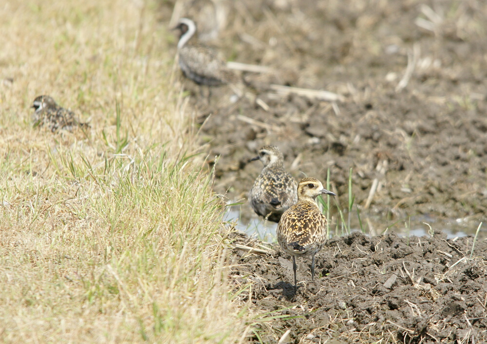 毎年春と秋、渡りの途中で立ち寄るムナグロの群れ。