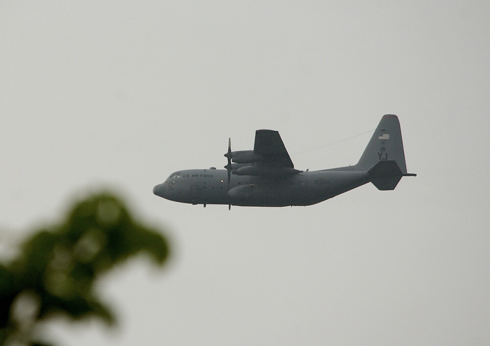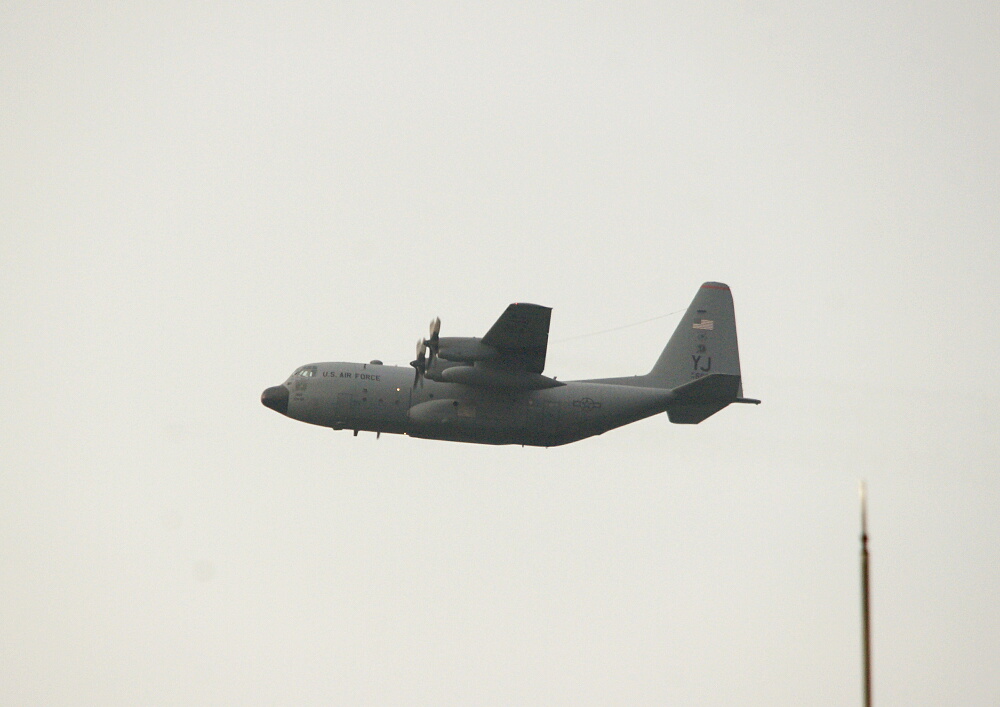 とっさにクルマに積んでいたα700を取り出しファインダー内に捉えると、機体色がグレーだったので米軍機と判った(写真でも「US AIR FORCE」の文字がはっきり読み取れる)。
