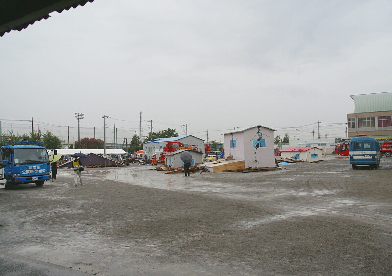 この場所は、昨日のブログに載せた写真を撮った場所なのだが、やはり訓練に参加する自衛隊や消防署の皆さんもすでに集まっていて、ものものしい雰囲気だ。
