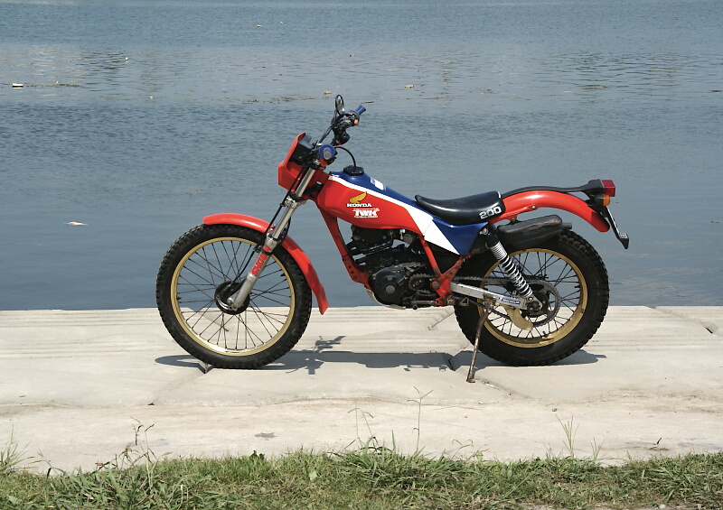 最初の予定では、前後ディスクブレーキに改造したりスペシャルなマシンを作ろうと思っていたんだけど、いじっているうちに、このトライアル界が誇る名車に敬意を表し、保安部品なども含めて「スタンダードの状態」を再現しようと思うようになった。