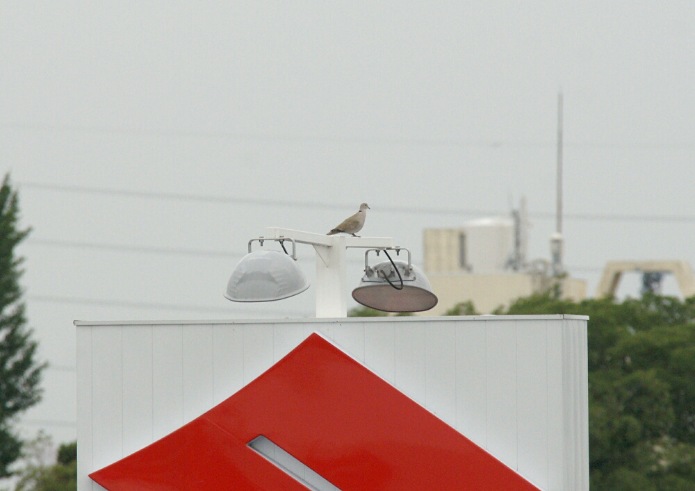 その後、至近距離を通り過ぎSUZUKIの看板の上に止まったシラコバトだったが、しばらくするともう見えなくなっていた。