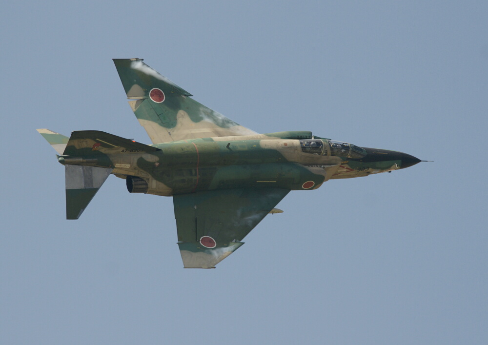 ファントムの機動飛行。この大迫力を目の当たりにした後では、ブルーインパルスのT-4は完全に迫力不足。こりゃ~ブルーも早くF-2に乗り換えないと(^_^;)。