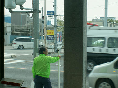 無線機や拡声器も用意されていたので、交通整理に励んでくれるのかと思いきや――― 結局一日中こうやって看板を持って立っているだけで、みんな無視してバンバン左折しまくってたようです(ーー;)。
