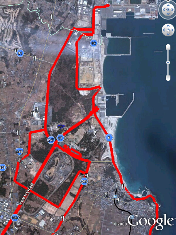 今回も、先日フラッと訪れたひたち海浜公園についての話。まずはその日のドライブルートログを取り込んだGoogleEarth画像↓