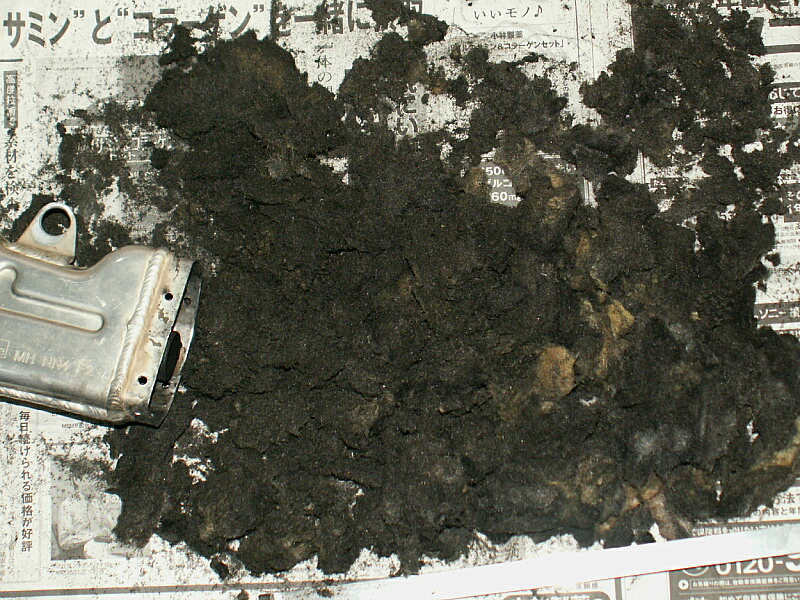 ↑中のグラスウールは、2ストみたいにベタベタにはなっていないけどすすけて真っ黒になってました。