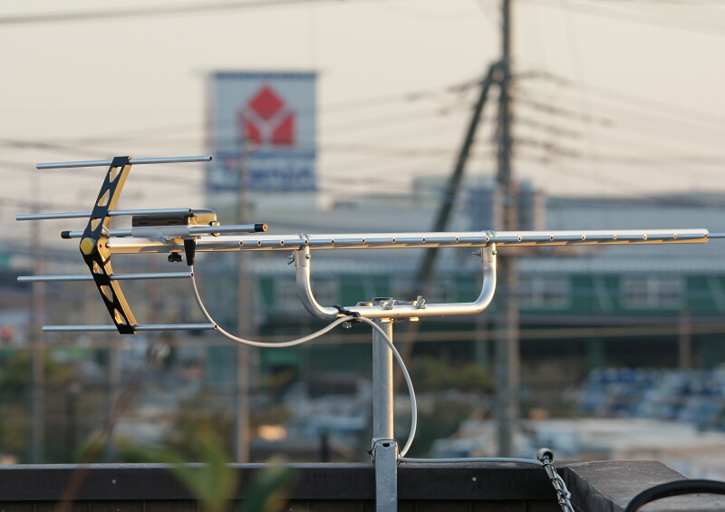 地デジ対応TVを思い切って買ったものの、今までの「共同アンテナ」では地上デジタル波は受信できなかったので近所のビバホームで「広告の品」のUHFアンテナと固定用金具(コンクリート壁を挟み込むタイプ)を買ってきて、自分でTWK屋上にチャチャッと取り付けたのだけど、それだけでは電波が弱く映らなかった(これは予想してた)ので「ブースター」の良さそうな物をネットで探して購入し取り付けることでバッチリ「地デジカ」完了(^^)v。けっこう高額なアンテナ工事代を節約する事ができたのでした。