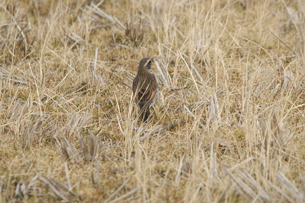 ↑いつもの田んぼを見るとツグミの姿が目に入ったので、ちょっと遠いけど望遠で撮っていると―――