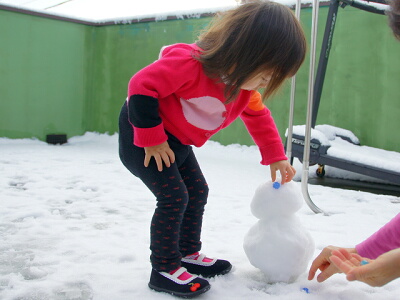 そしてその後、何十年ぶり(!?)かで雪ダルマを作って遊んだり(^_^;)↓